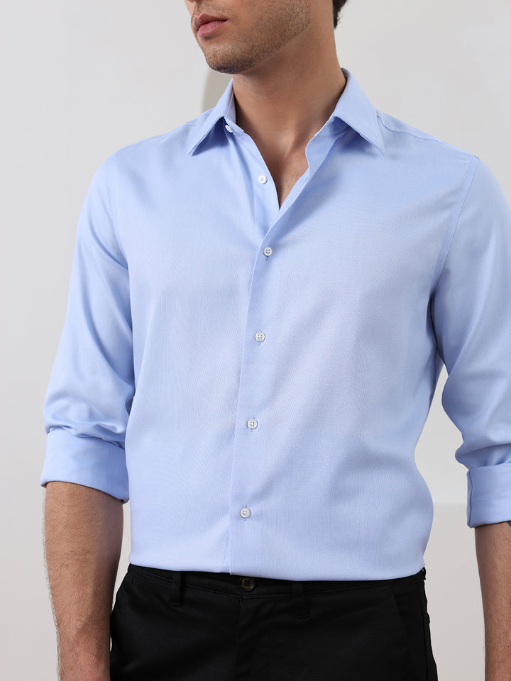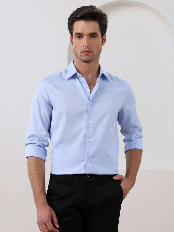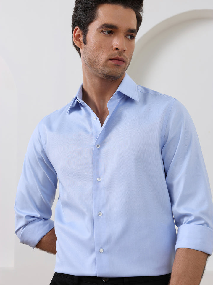 Blue Regular Fit Solid Formal Cotton Non-Iron Shirt for Men (NRUCI)