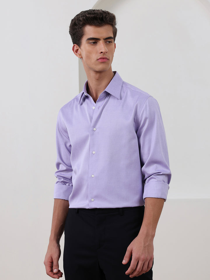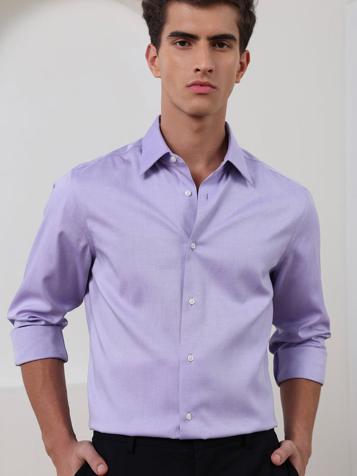 Purple Regular Fit Solid Formal Cotton Non-Iron Shirt for Men (NAGRA)