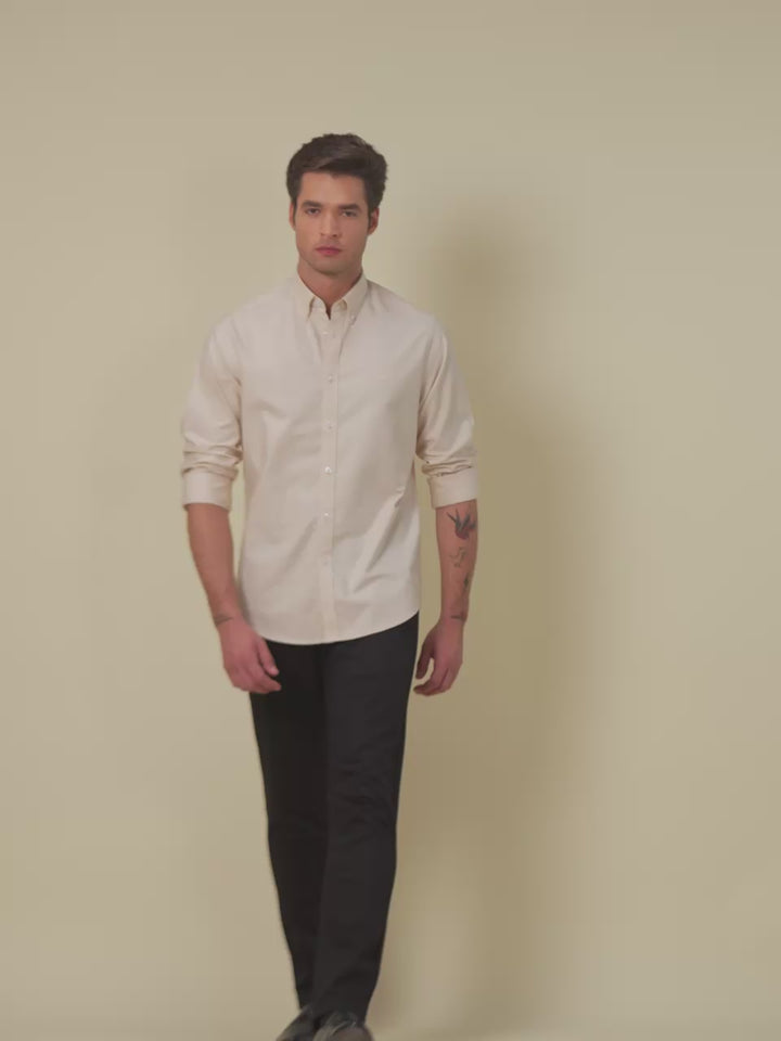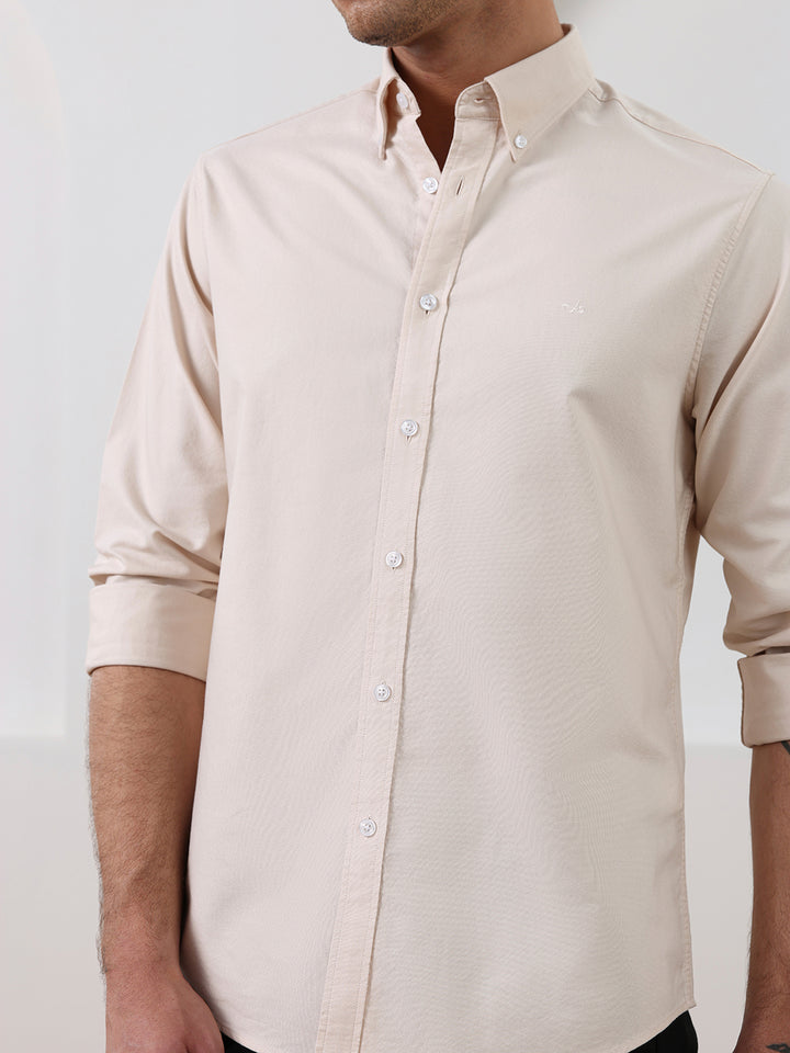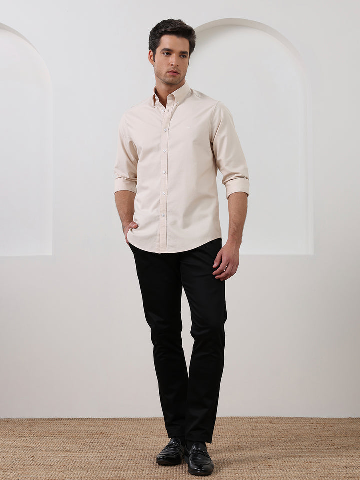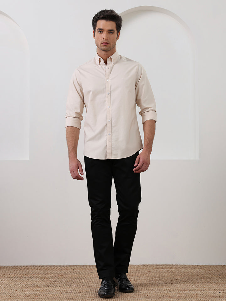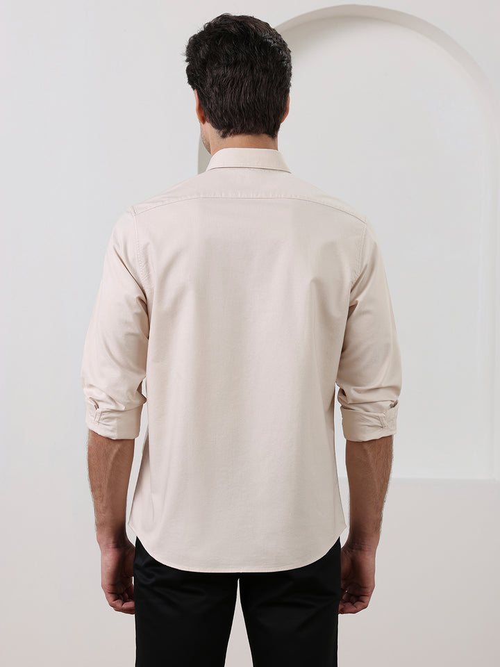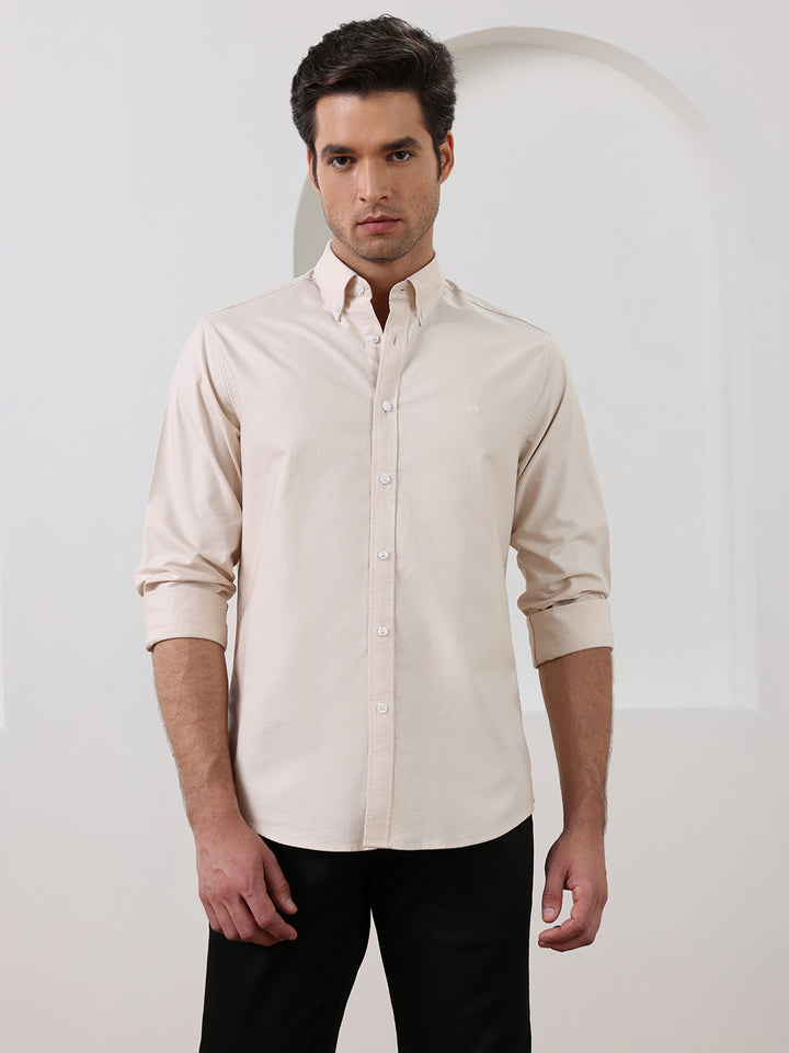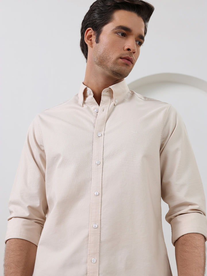 Beige Regular Fit Solid Casual Cotton Shirt for Men (LELON)