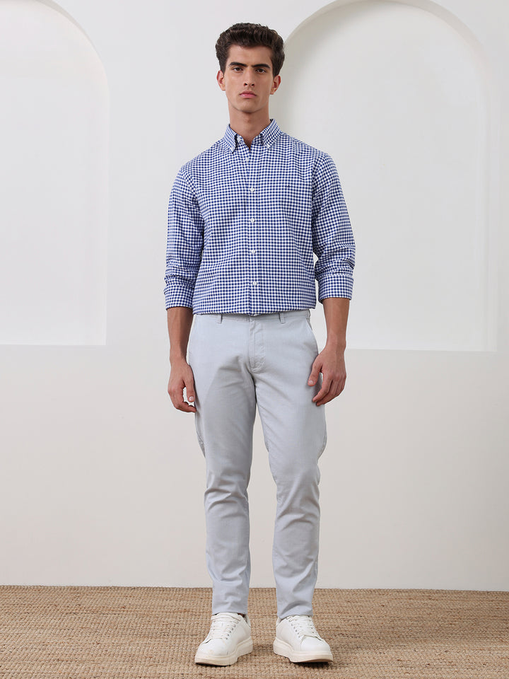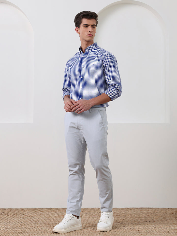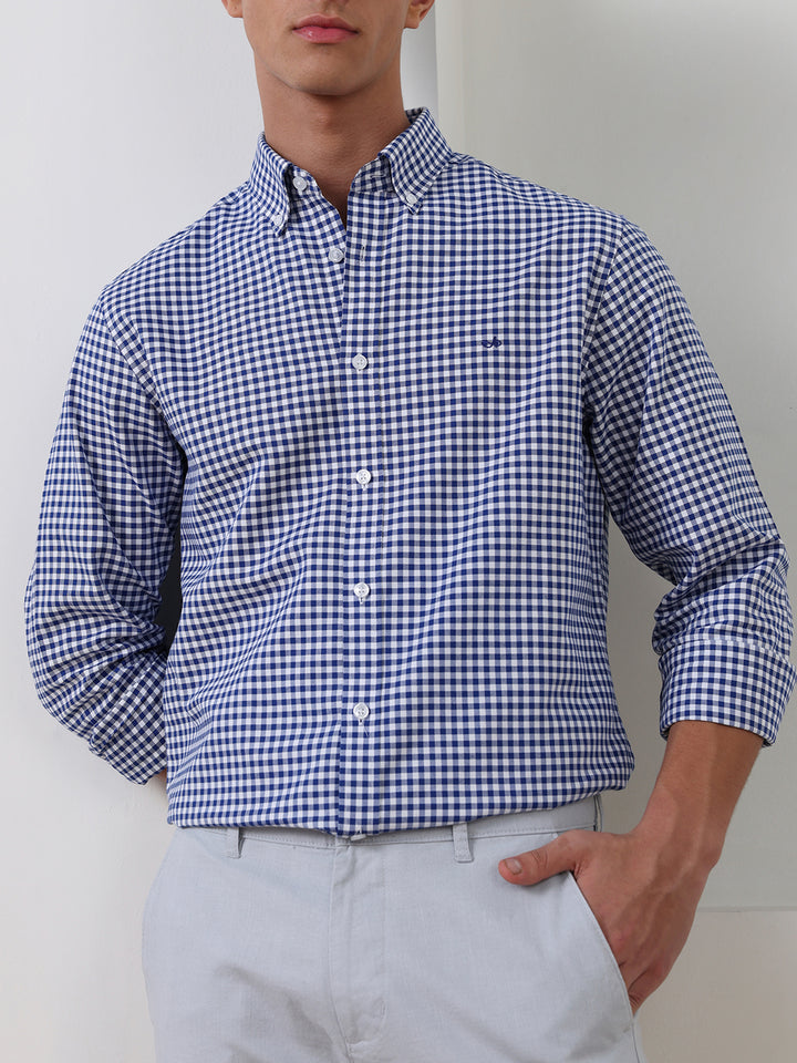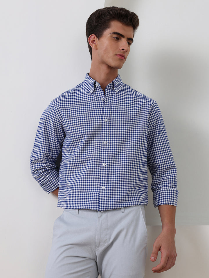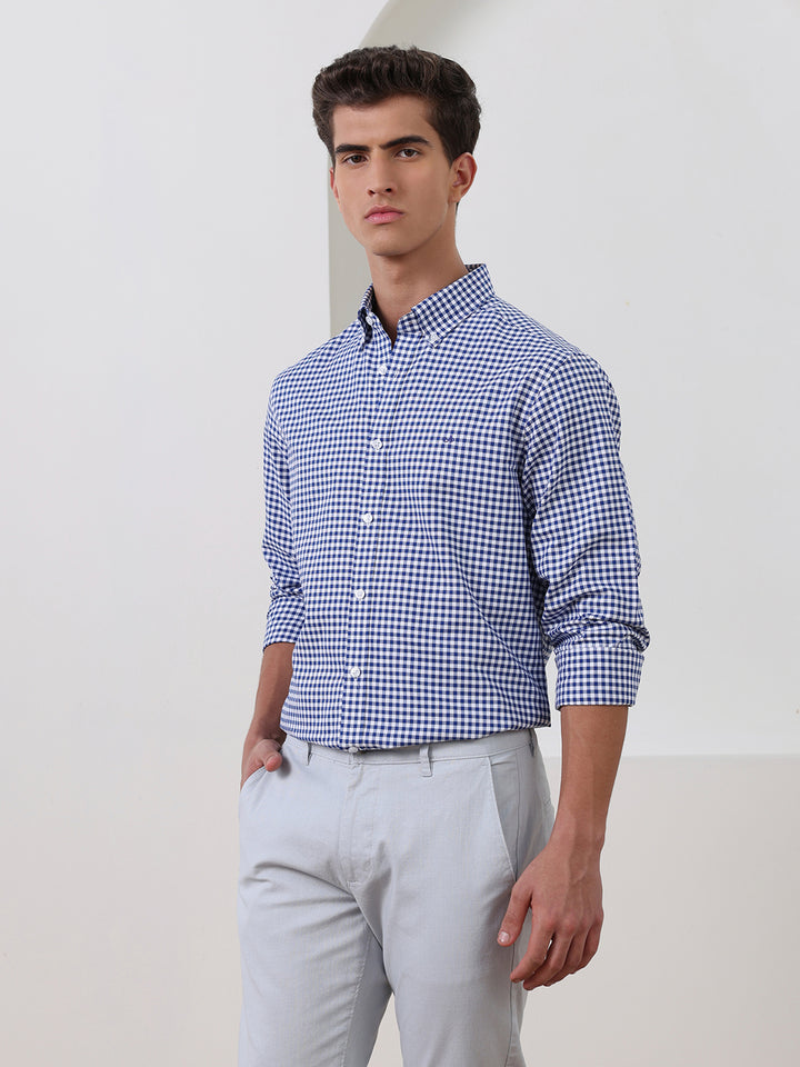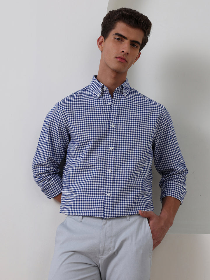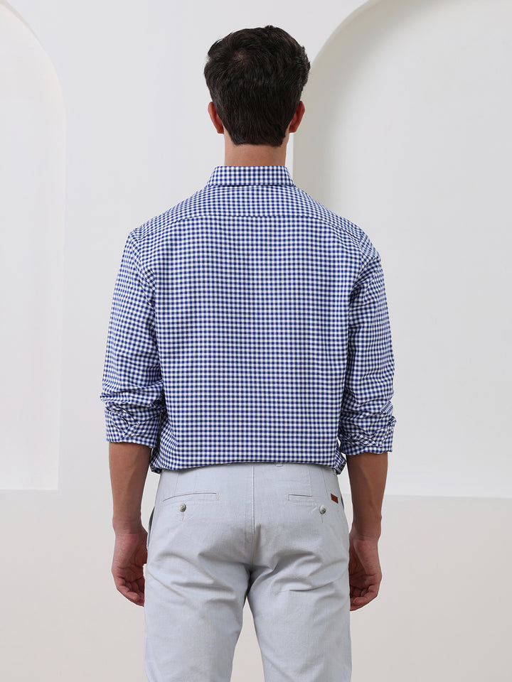 Blue Regular Fit Checked Casual Cotton Shirt for Men (LENA)