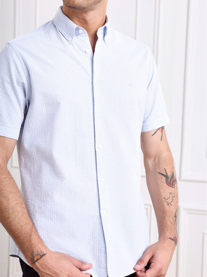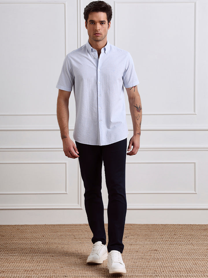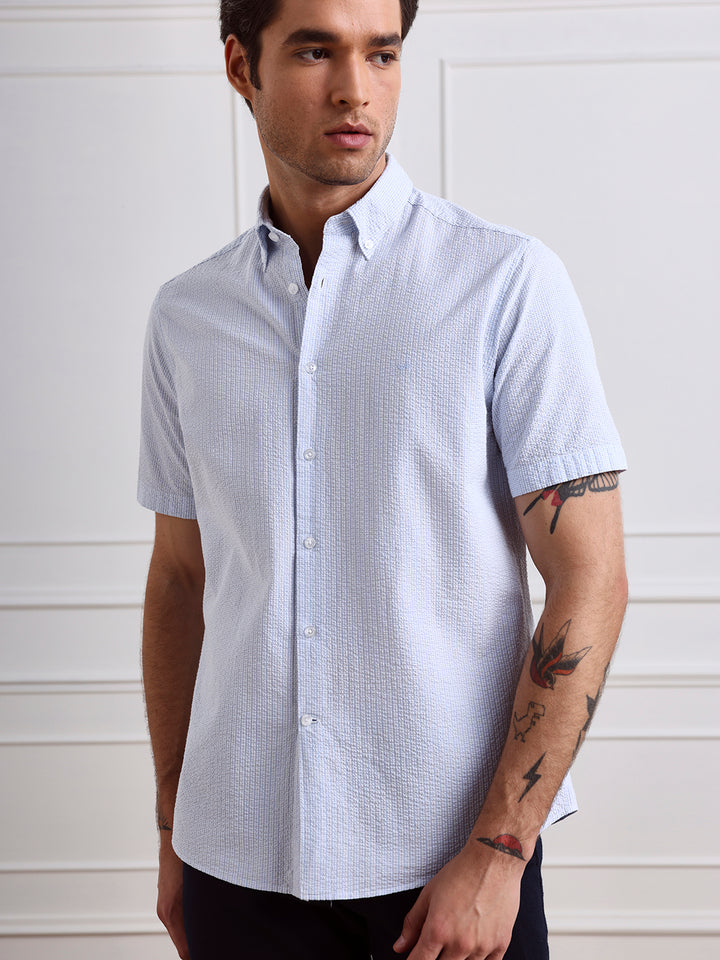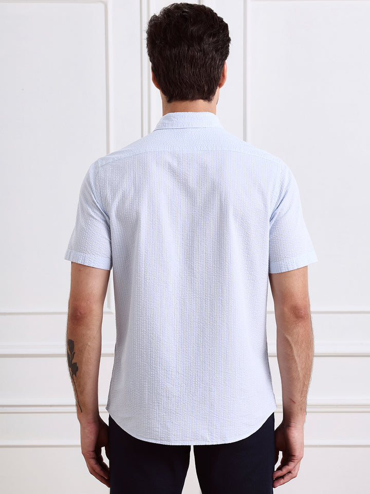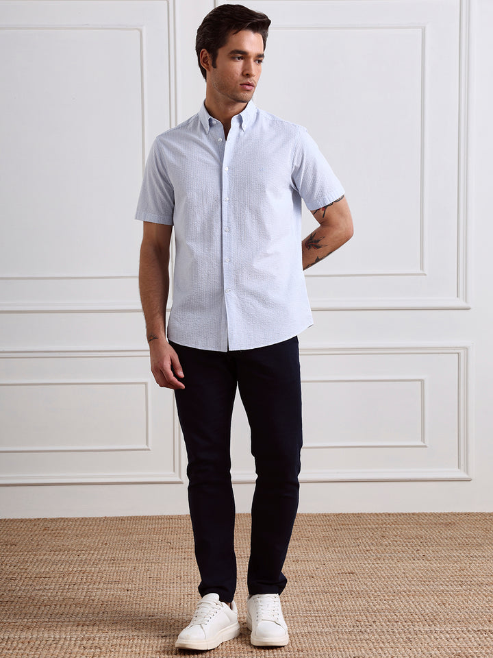 Blue Regular Fit Striped Casual Cotton Blend Shirt for Men (LIANA)