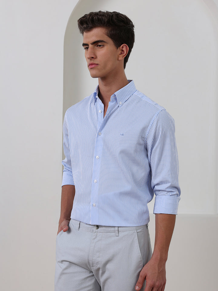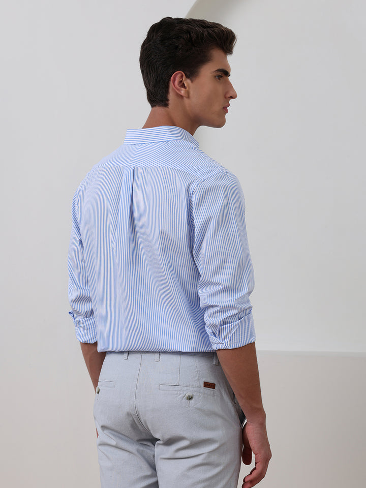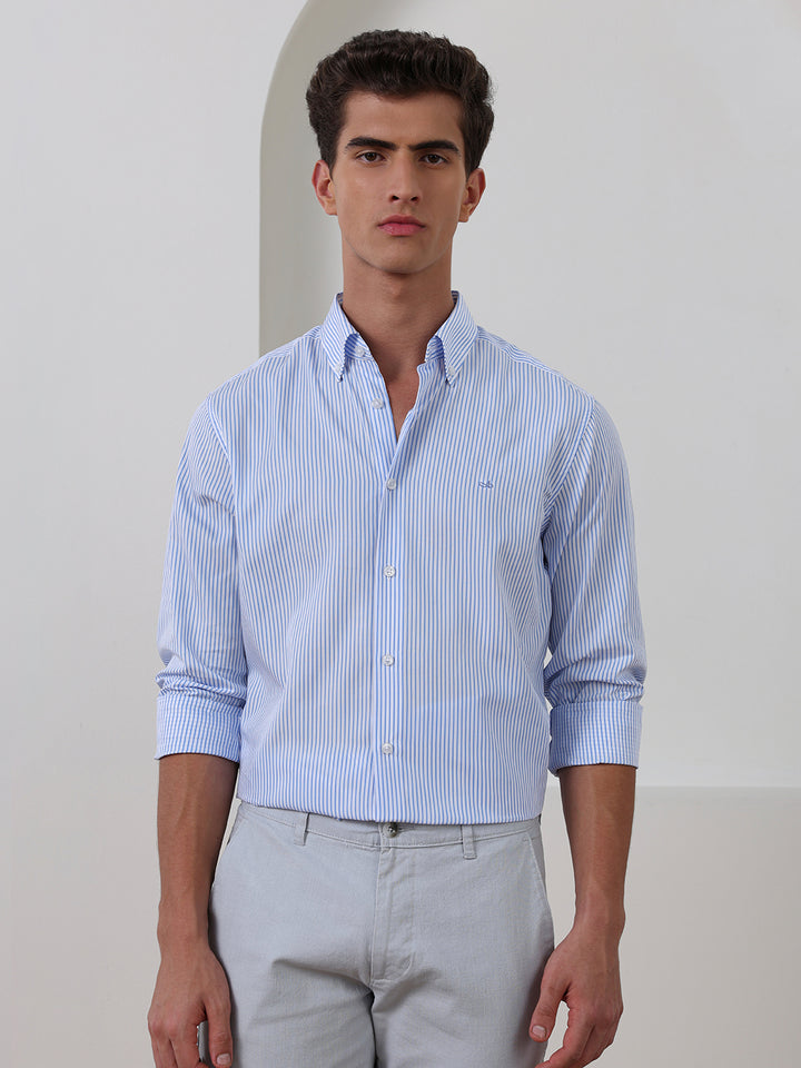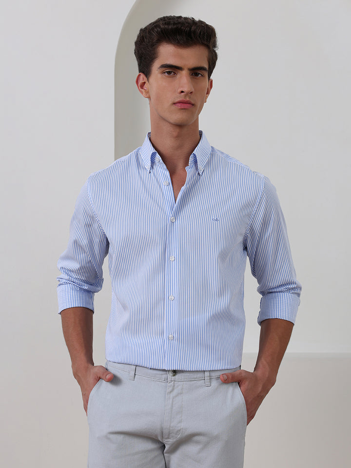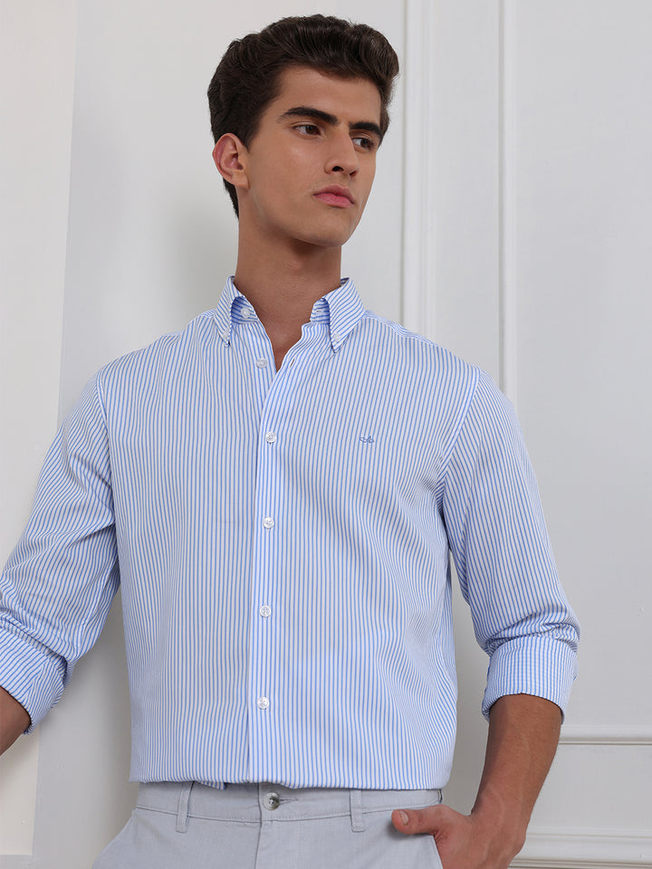 Blue Regular Fit Striped Casual Cotton Shirt for Men (CENIL)