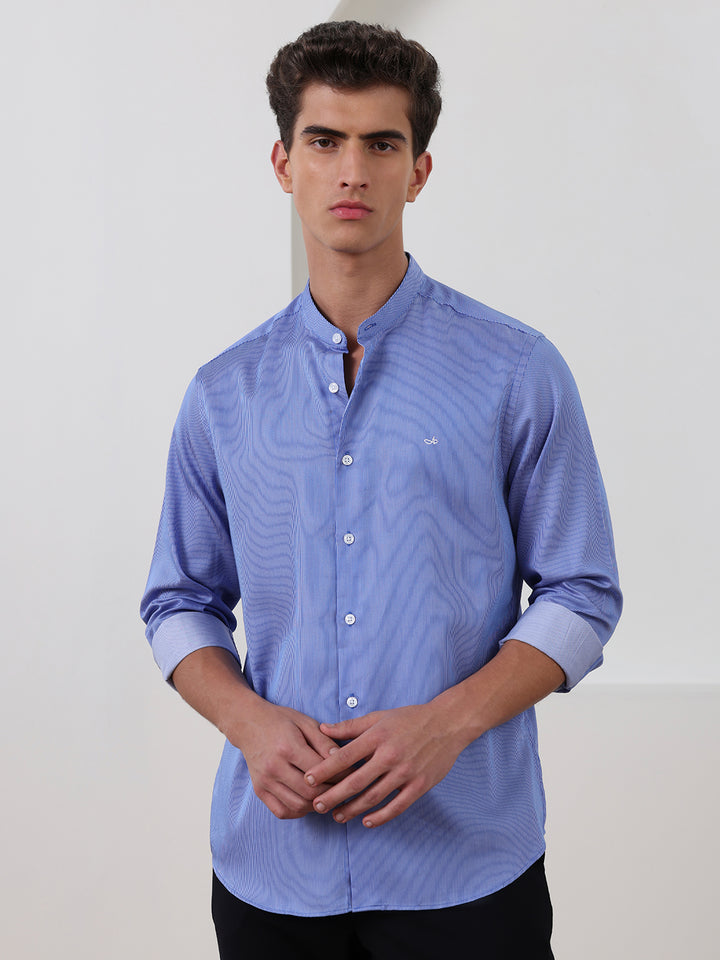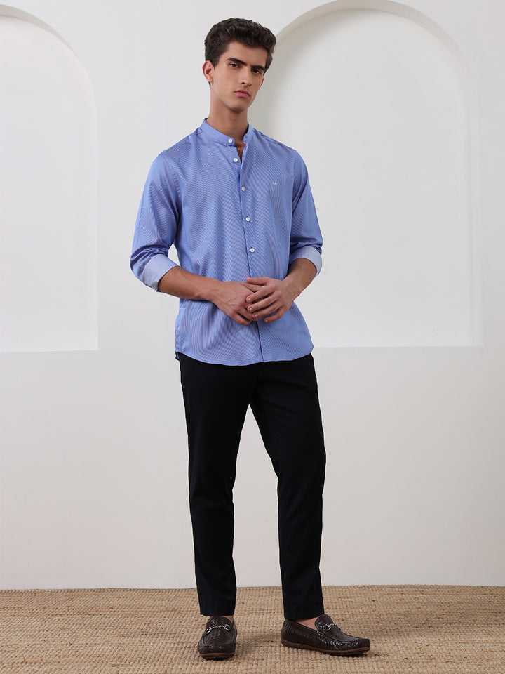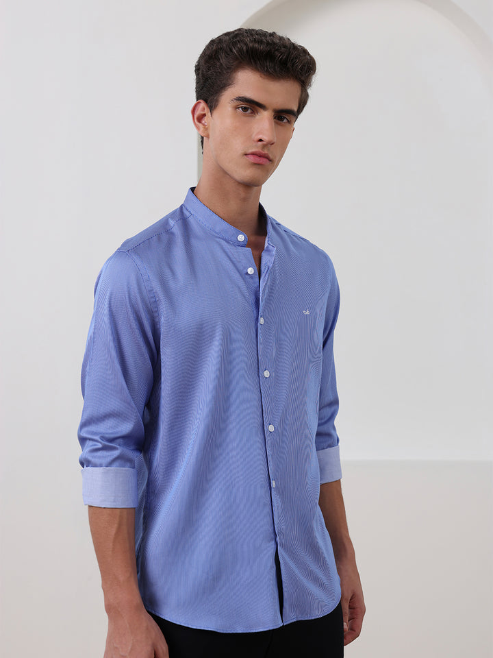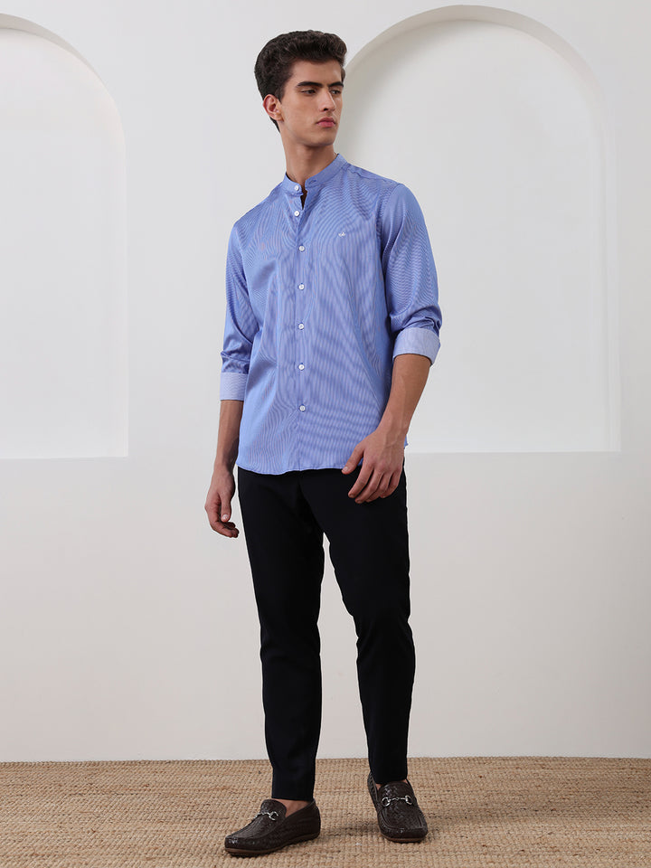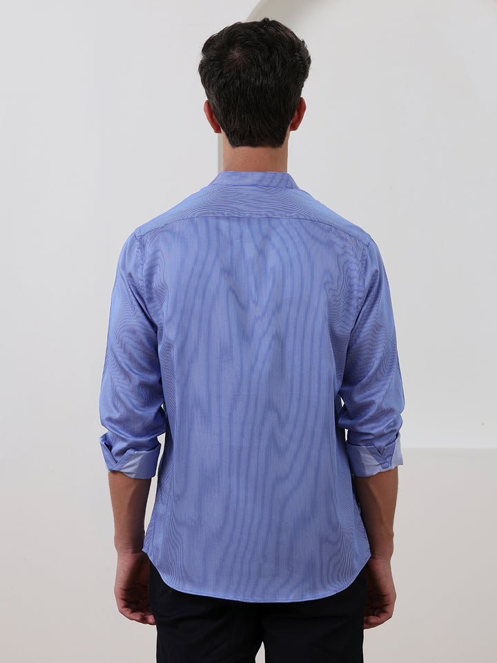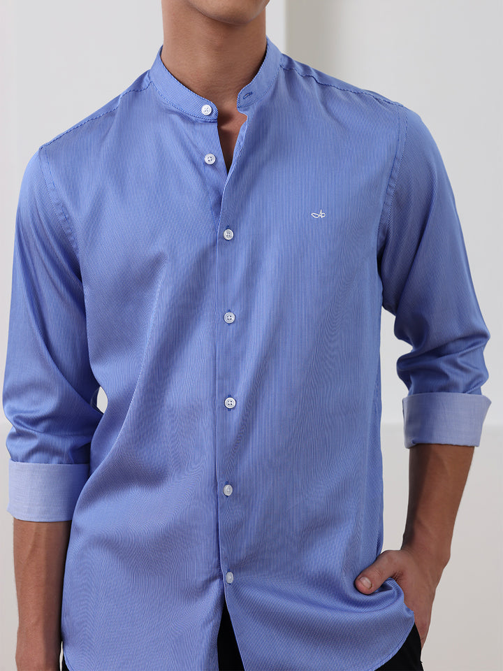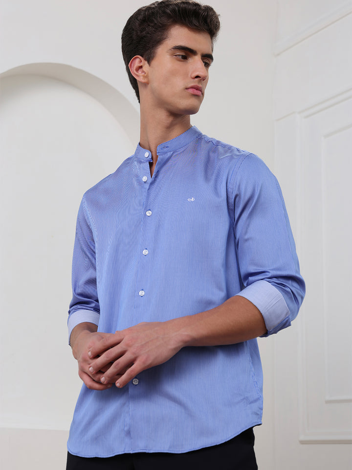 Blue Regular Fit Striped Casual Cotton Shirt for Men (COLLE)