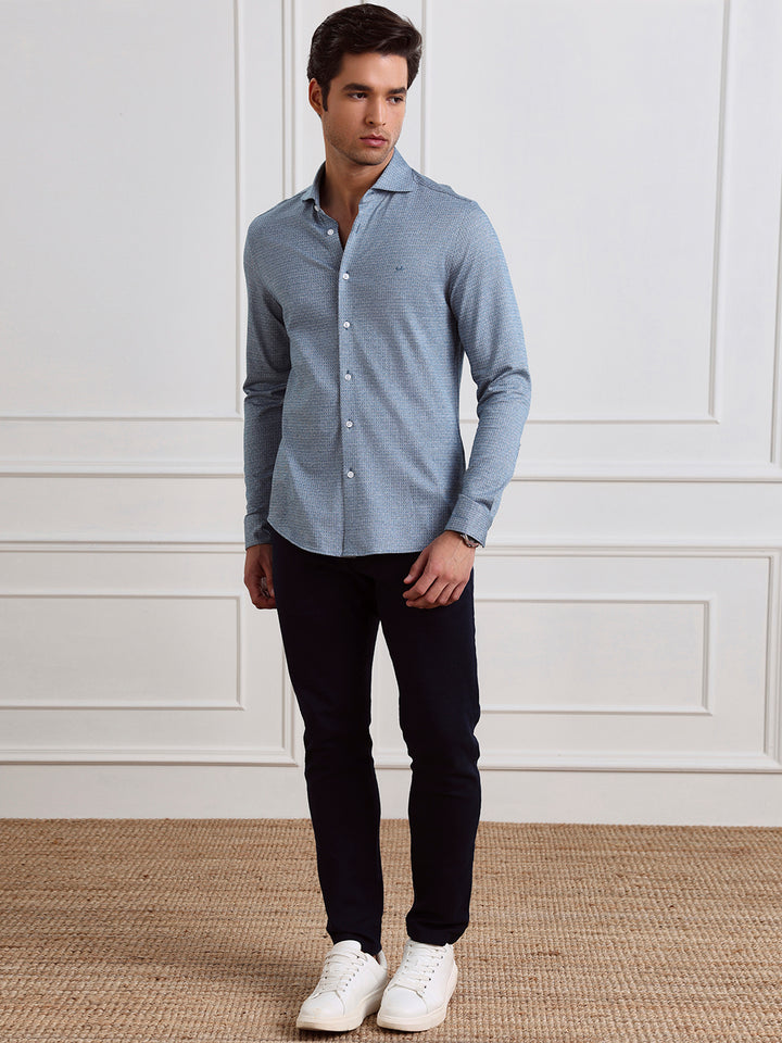Blue Slim Fit Checked Casual Cotton Shirt for Men (LABAC)