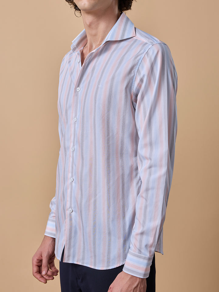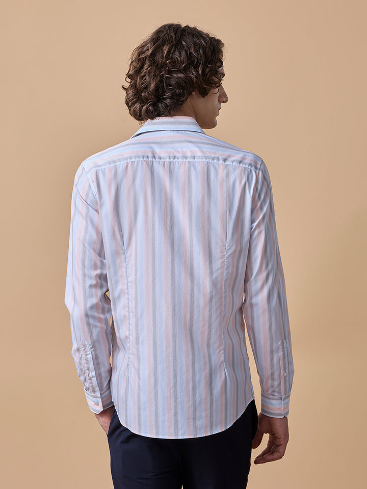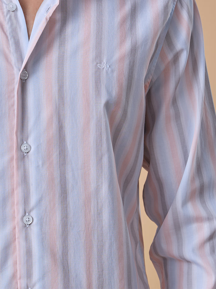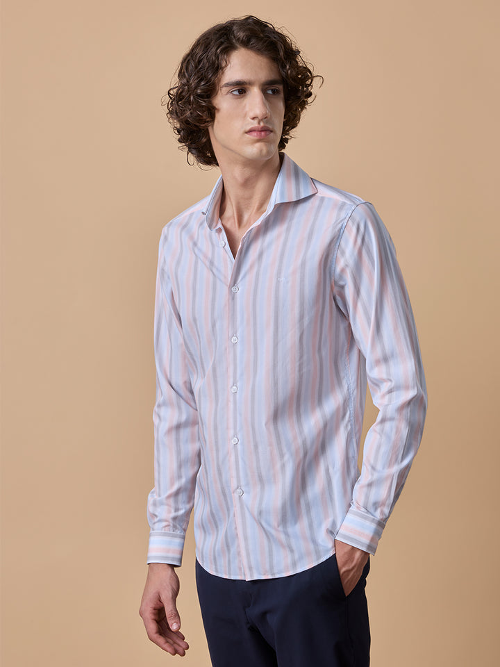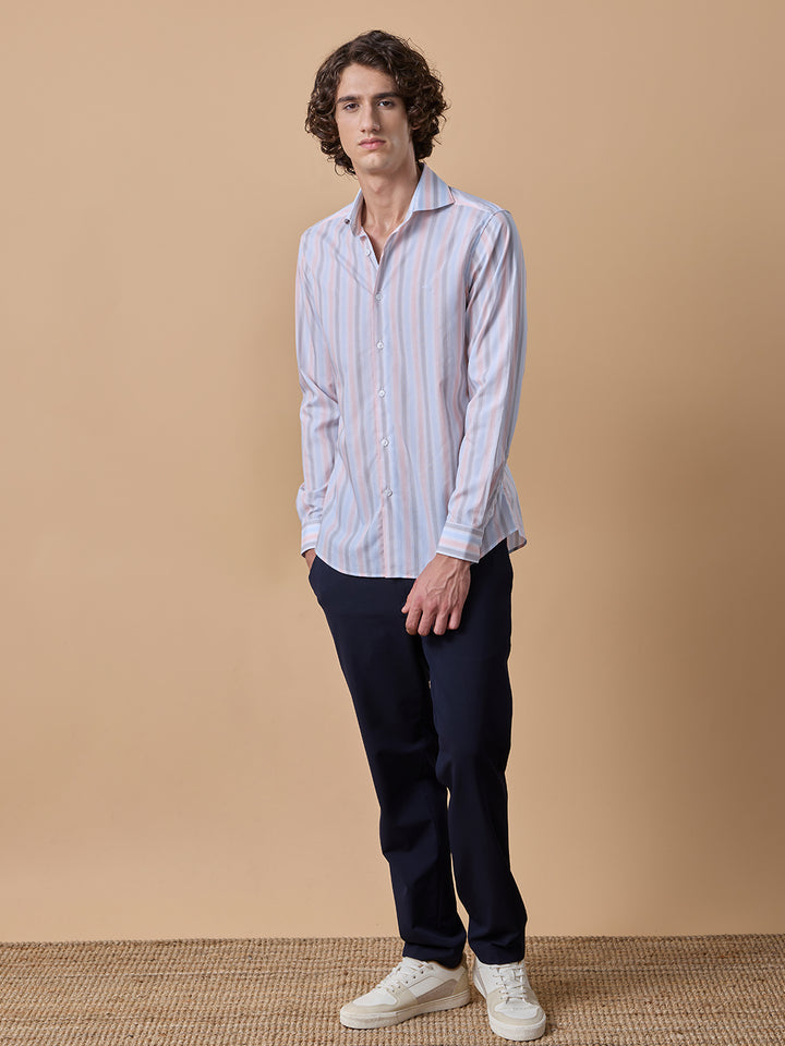 Blue Slim Fit Striped Smart Casual Cotton Shirt for Men (ALAIN)