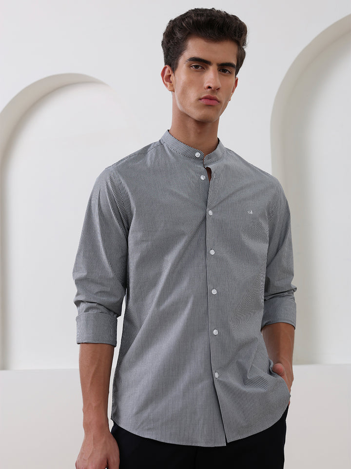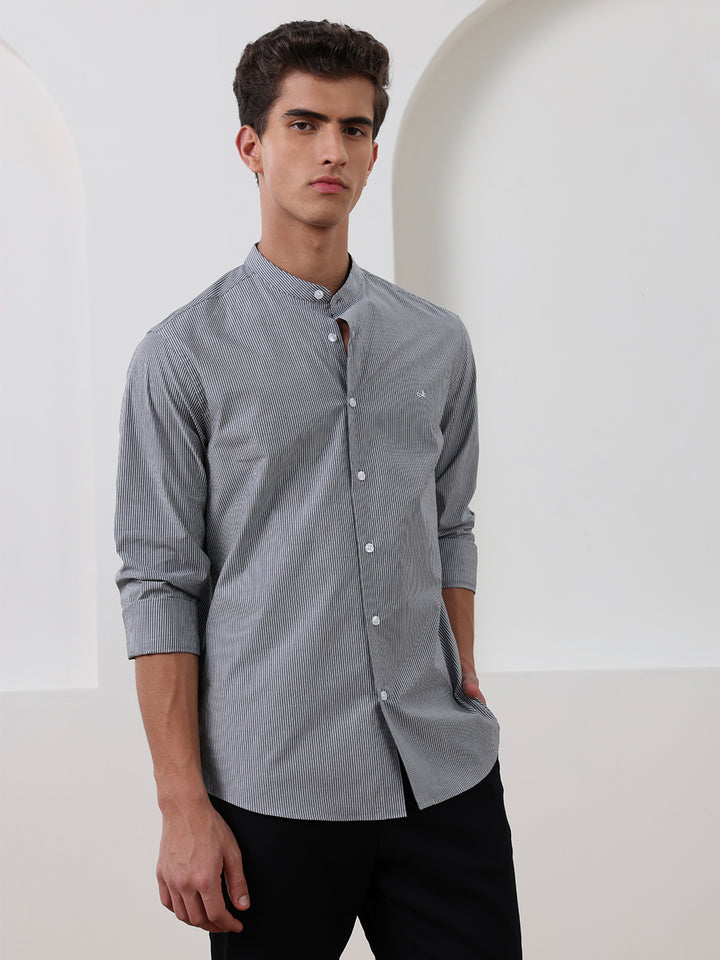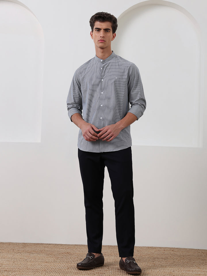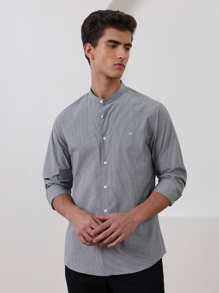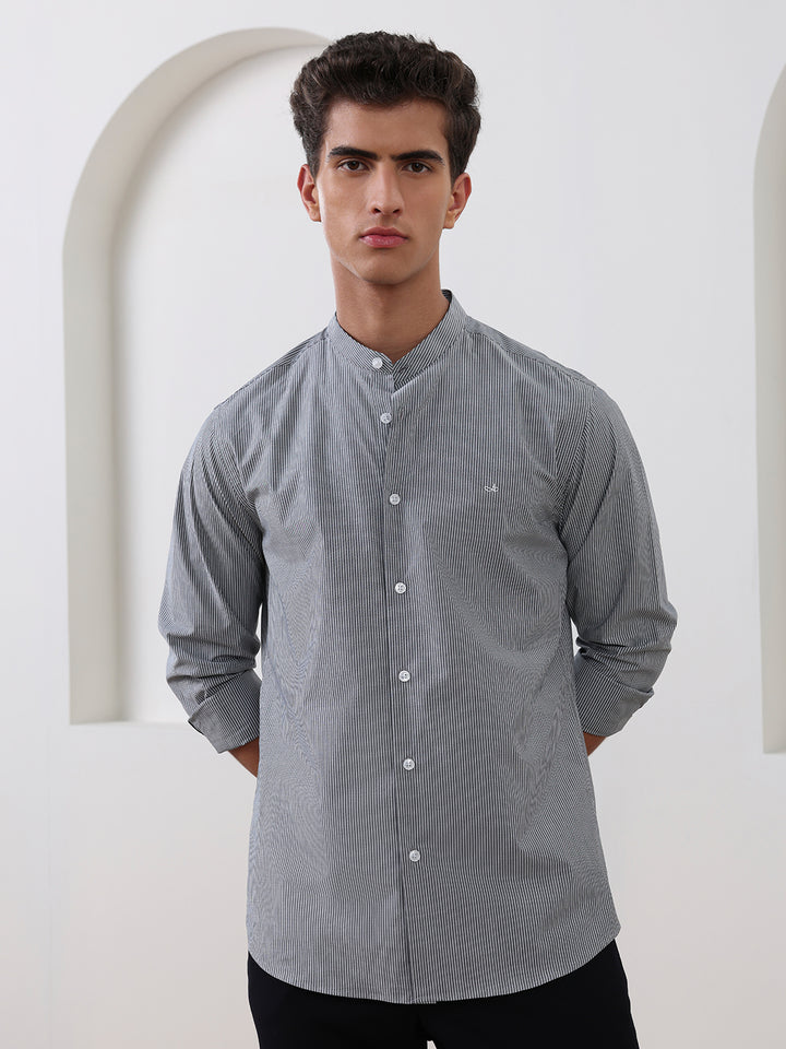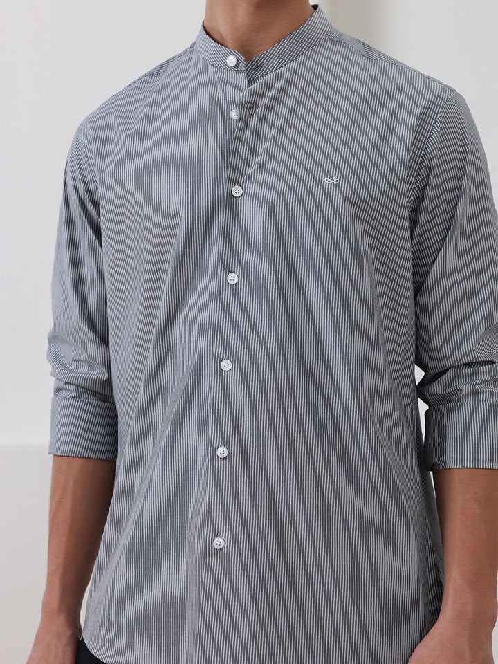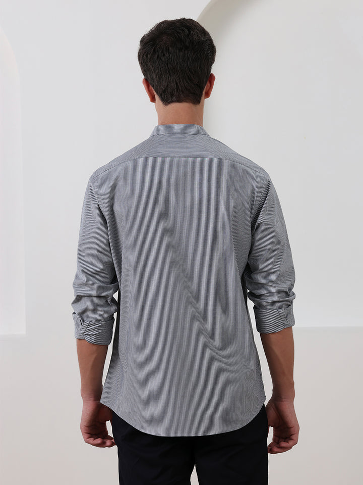 Grey Regular Fit Striped Casual Cotton Shirt for Men (CURO)
