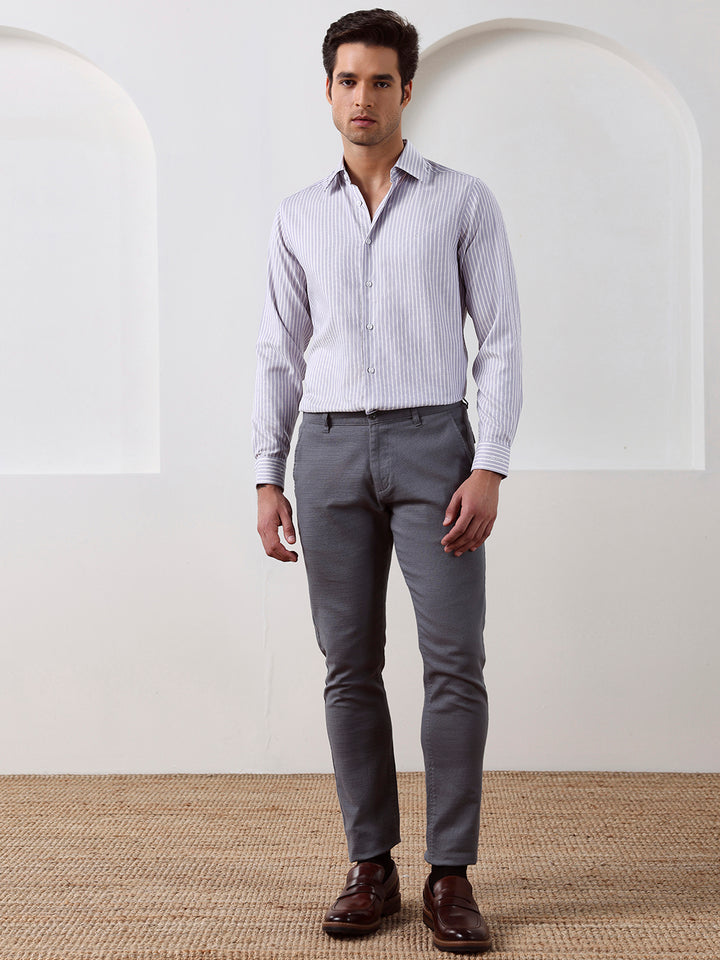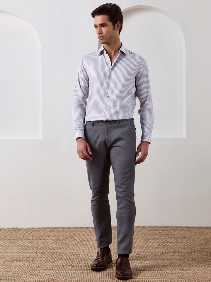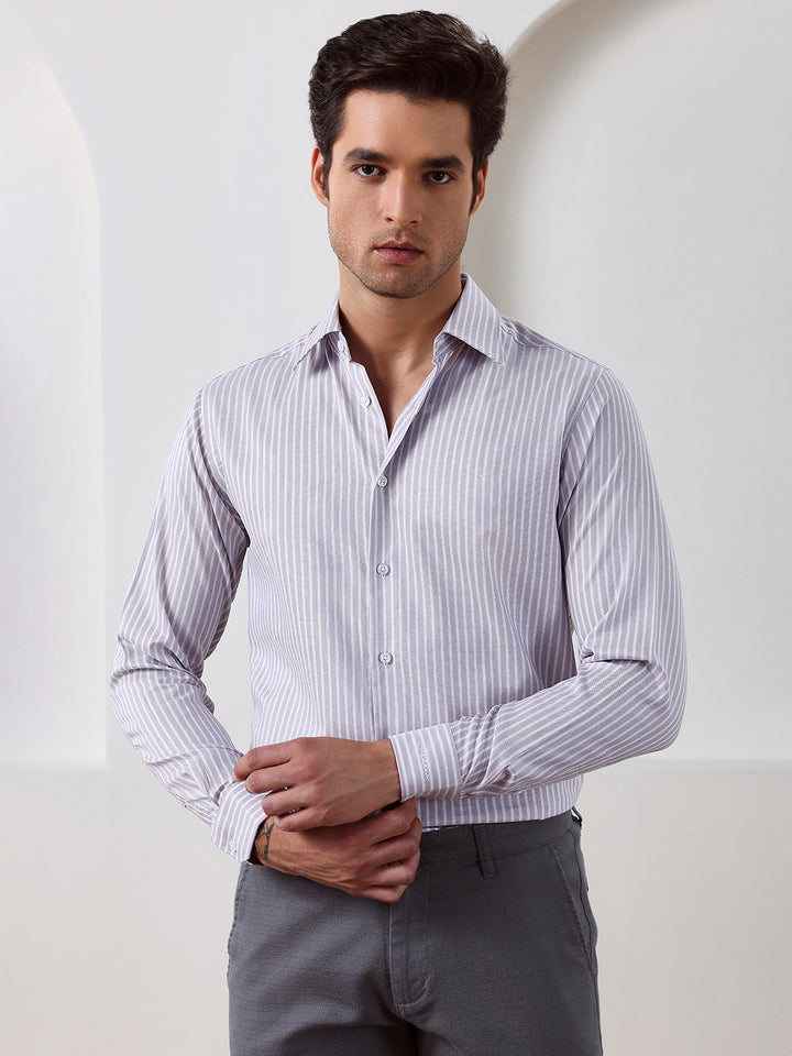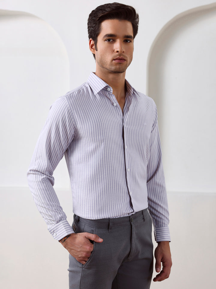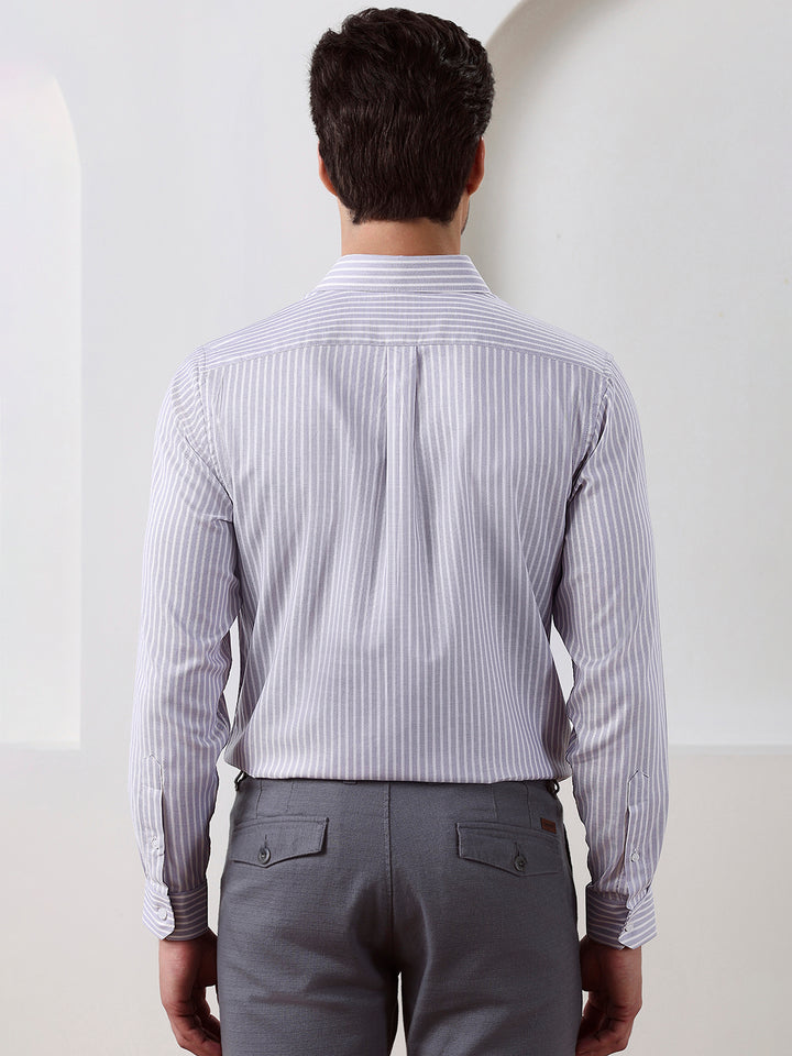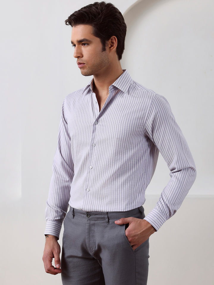 Lavender Regular Fit Striped Formal Cotton Shirt for Men (LWIX)