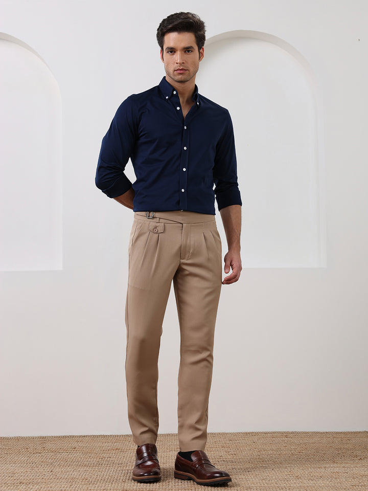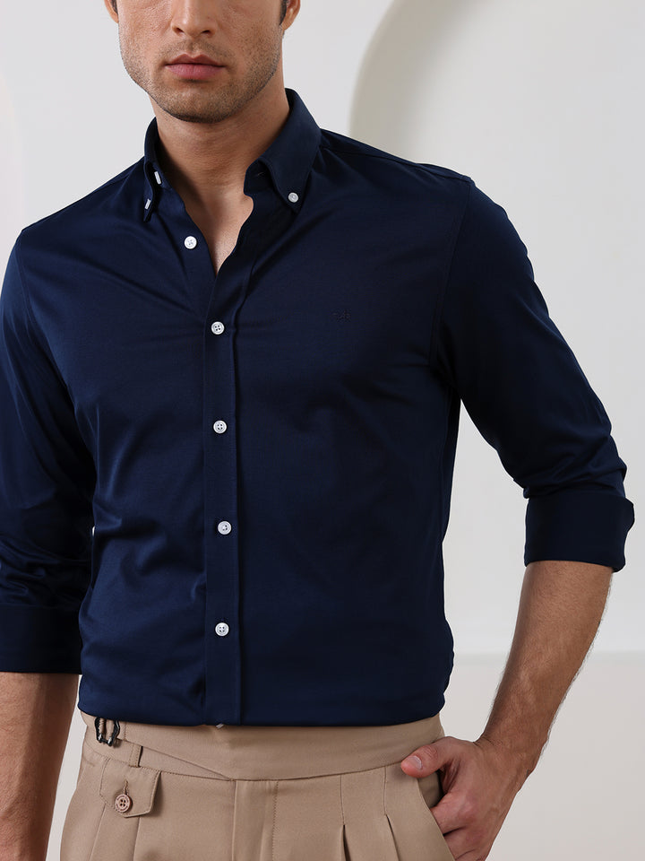 Navy Blue Slim Fit Solid Formal Cotton Shirt for Men (LAZAR)