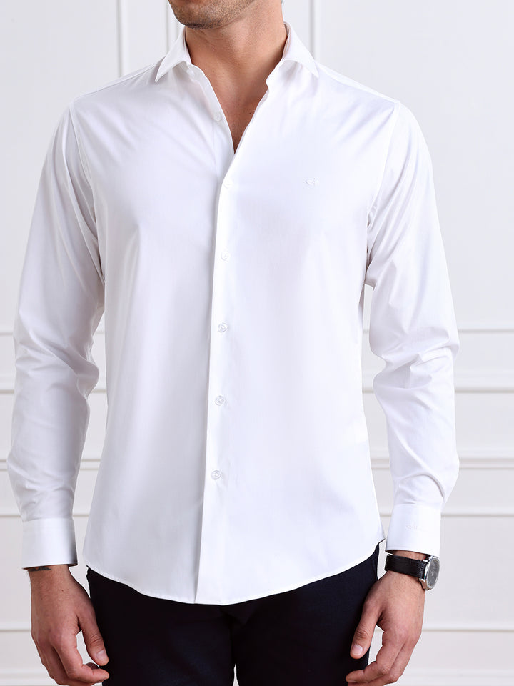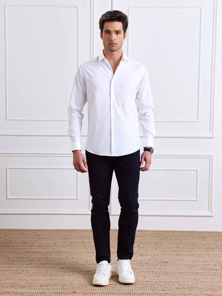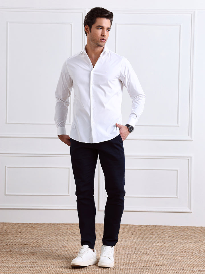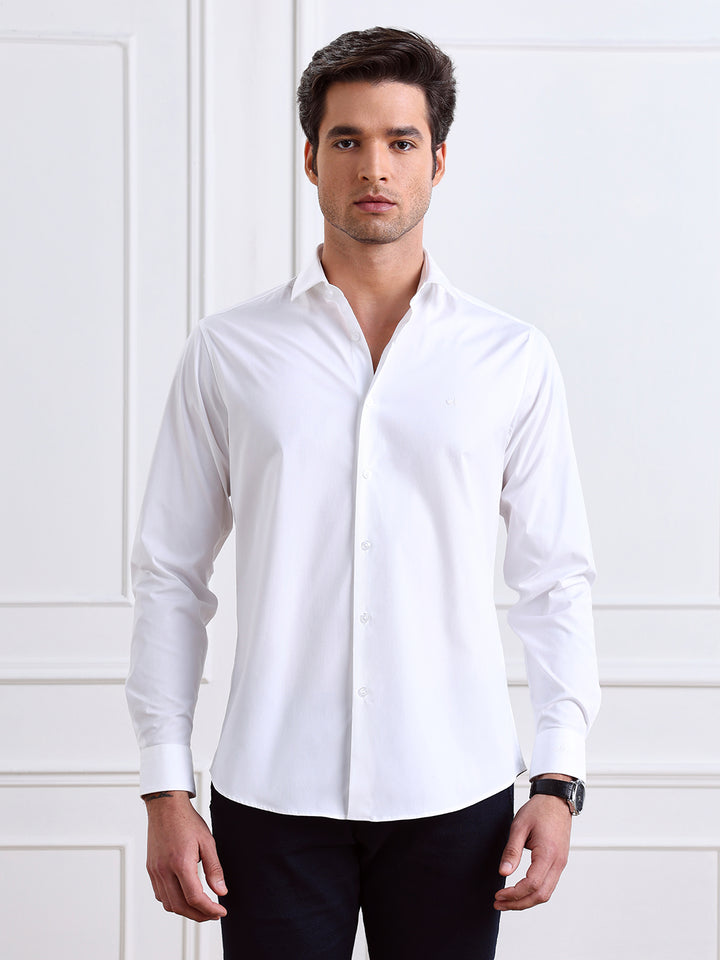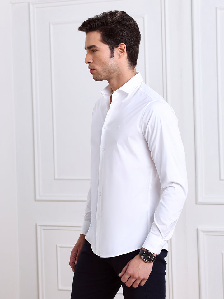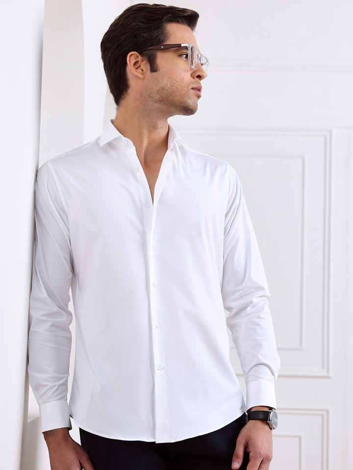 White Regular Fit Solid Formal Cotton Shirt for Men (LADAK)