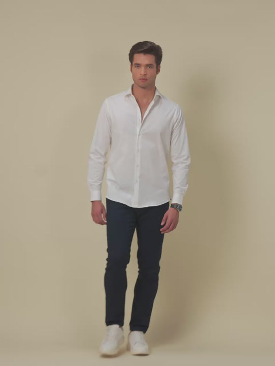 This men's shirt is crafted from cotton fabric, offering a soft, breathable, and comfortable fit. Designed for all-day wear, it combines classic style with durability, making it a versatile choice for both casual and formal occasions.