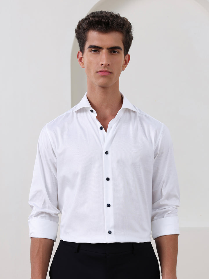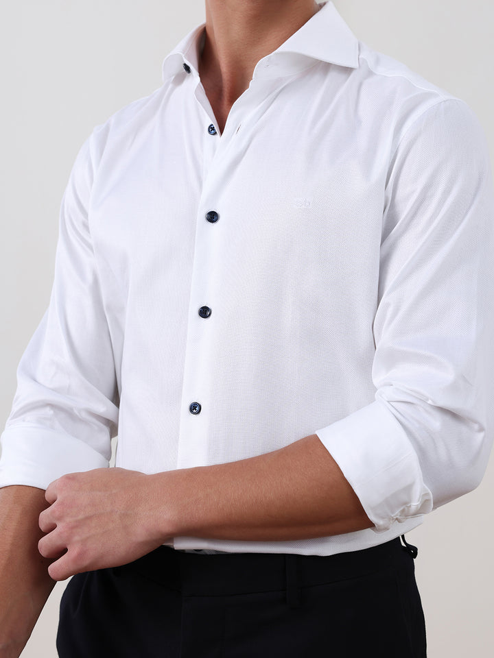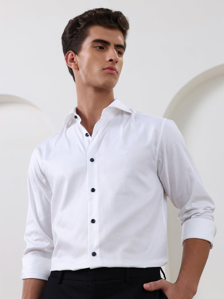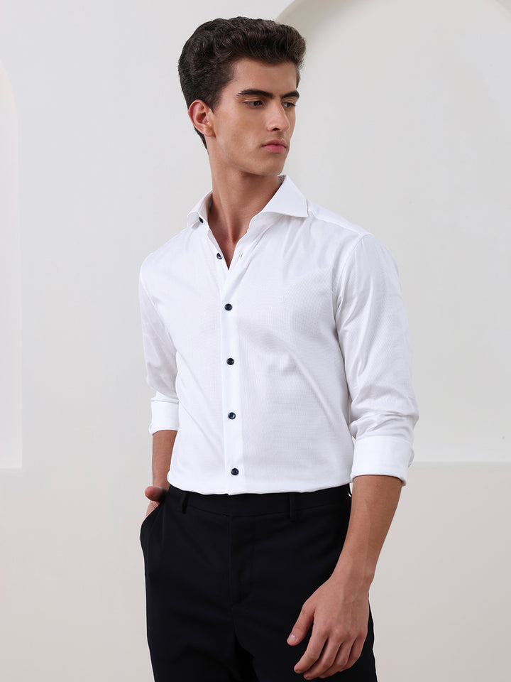 White Regular Fit Solid Formal Cotton Shirt for Men (LAWO)