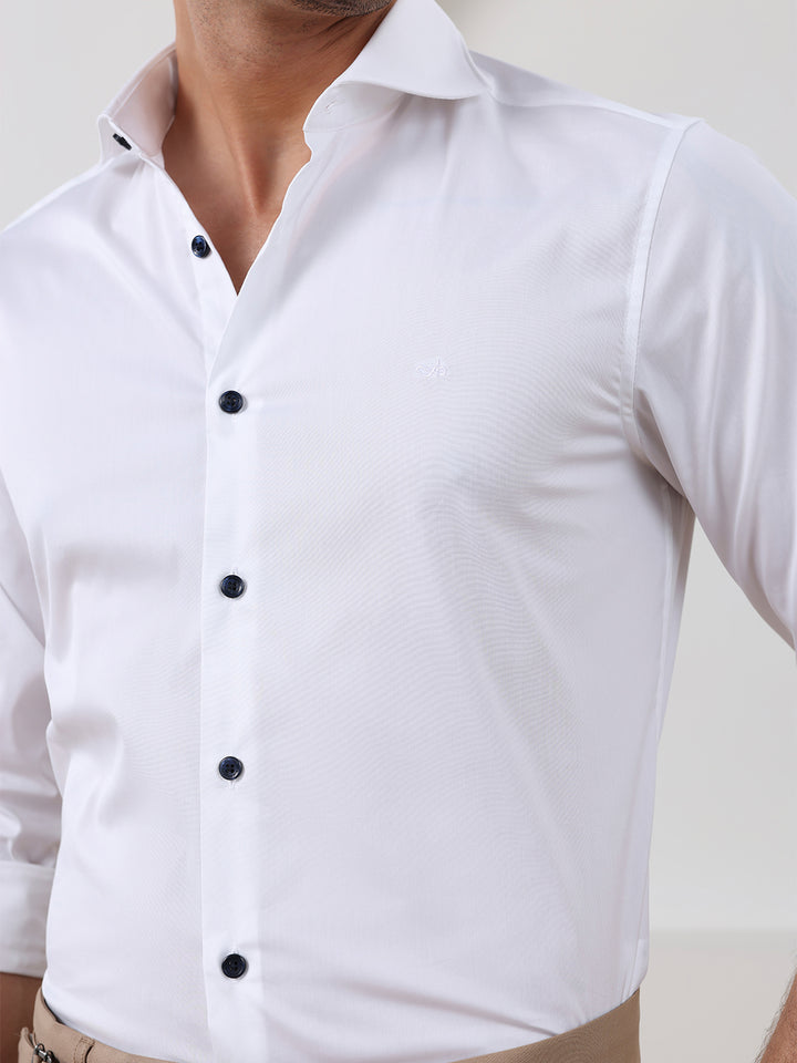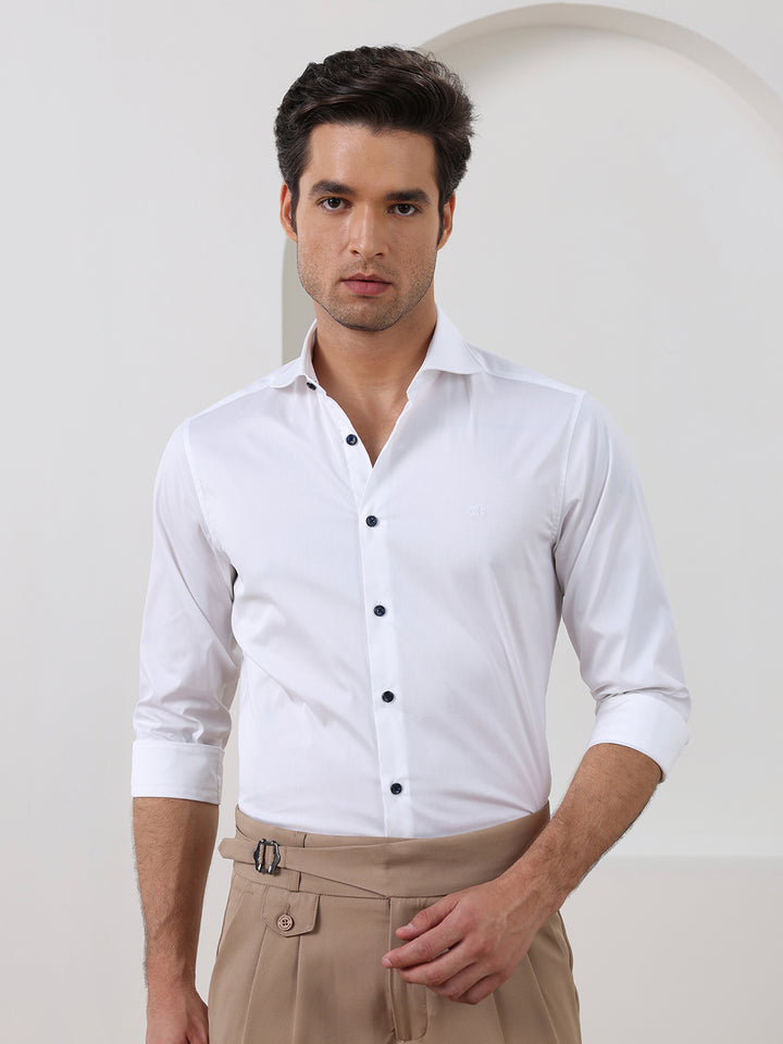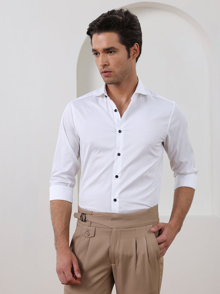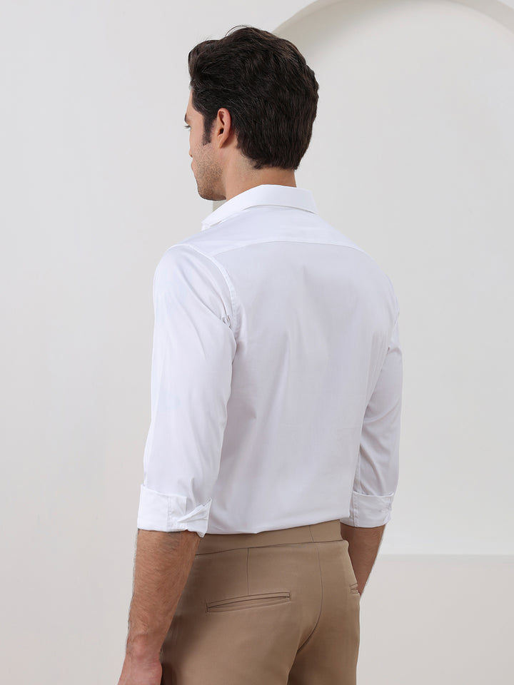 White Regular Fit Solid Formal Polyester Shirt for Men (LUWX)
