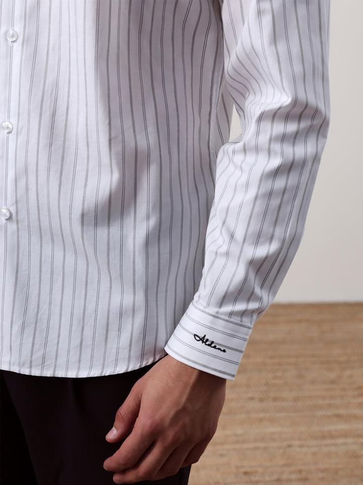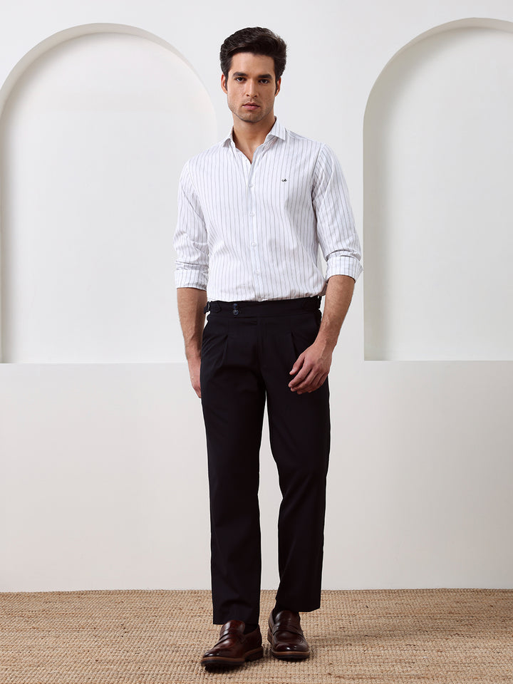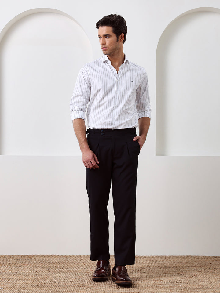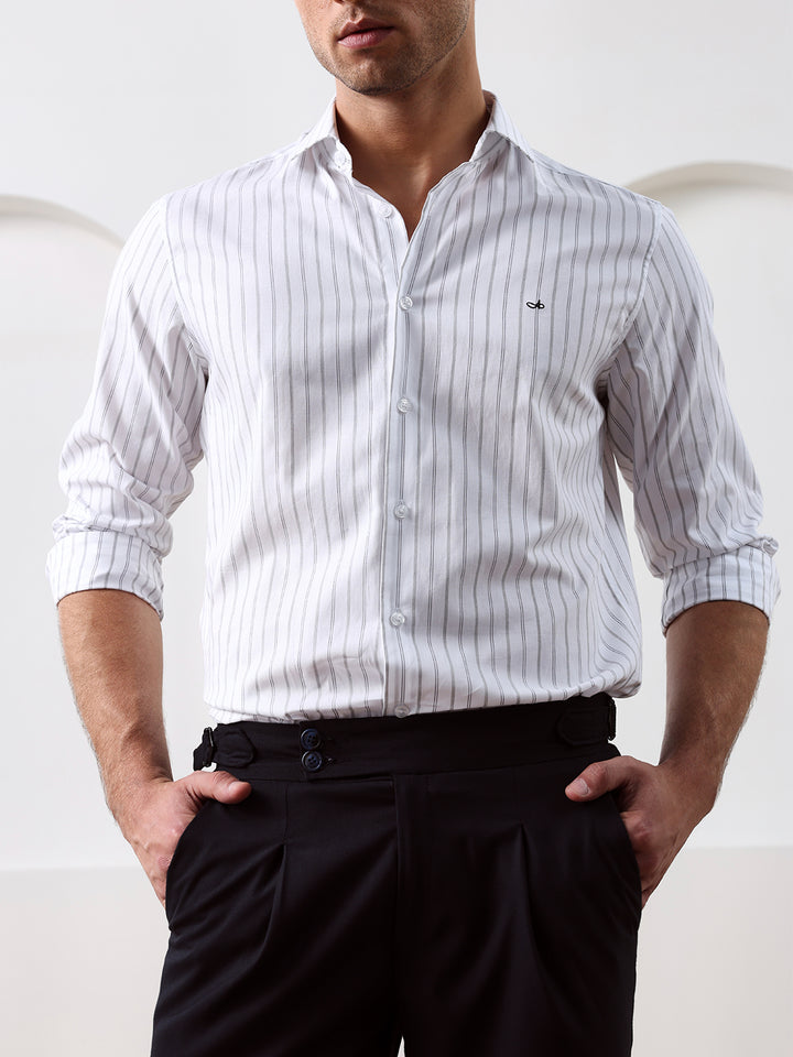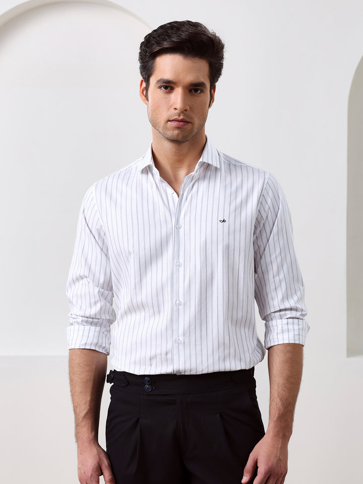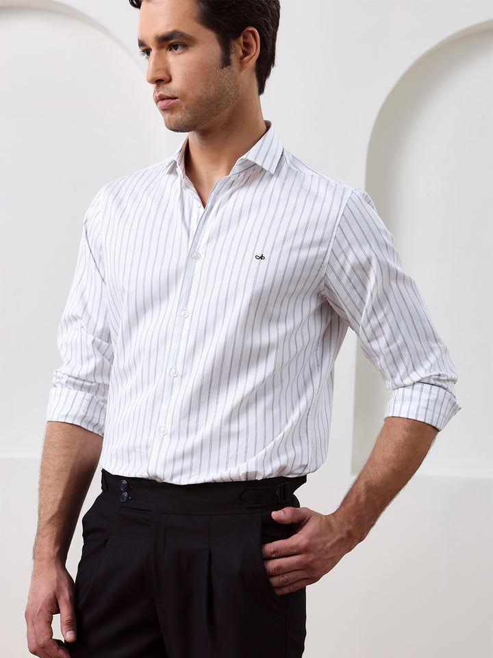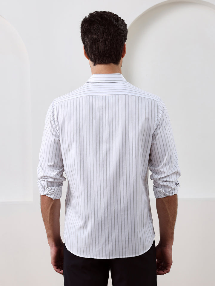 White Regular Fit Striped Casual Cotton Shirt for Men (CONAN)