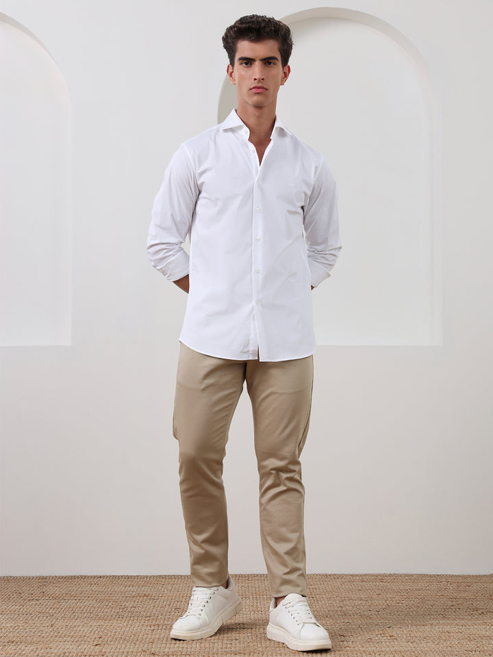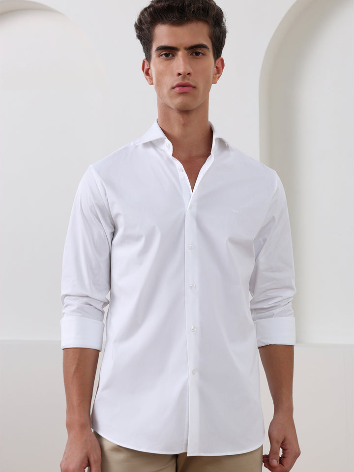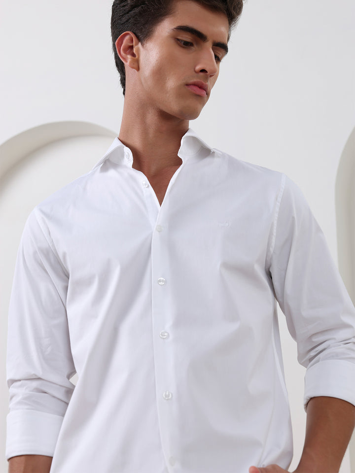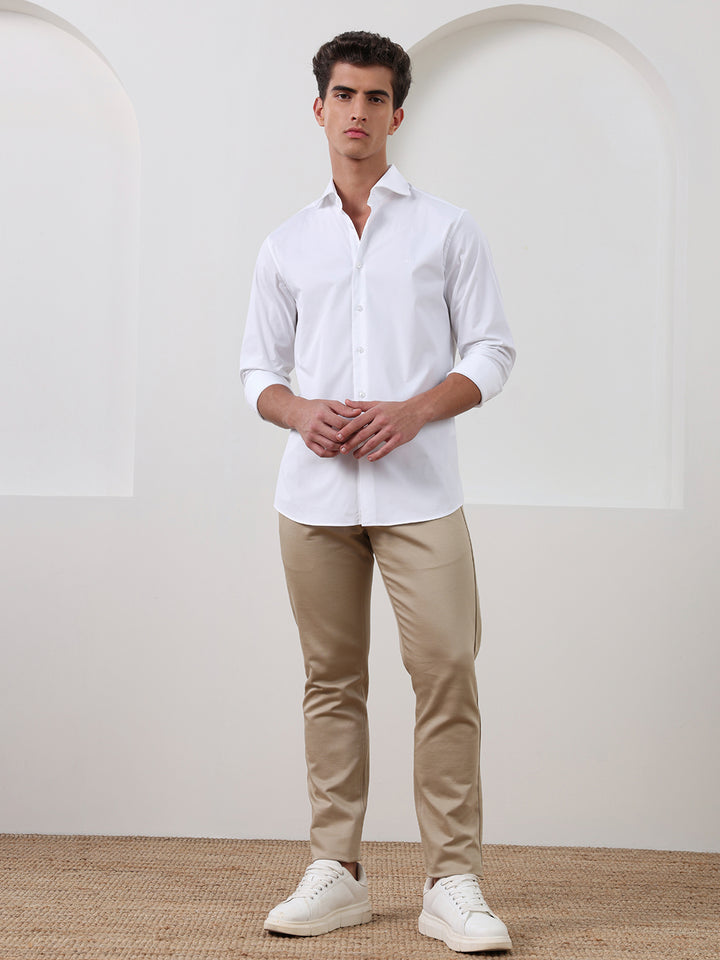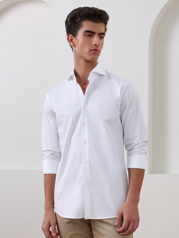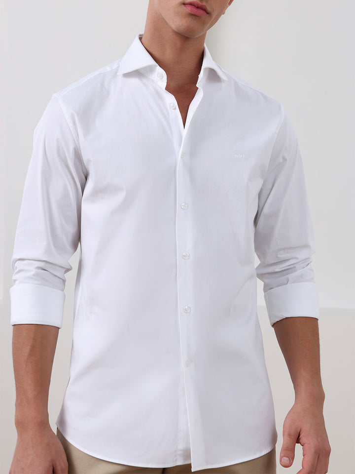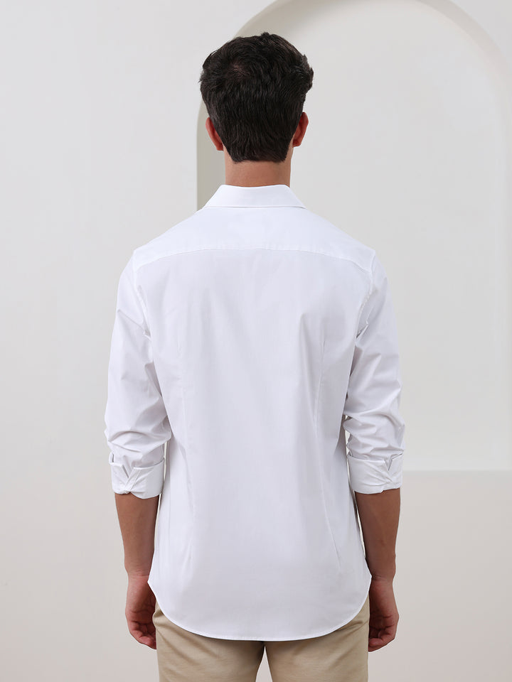 White Slim Fit Solid Formal Satin Shirt for Men (LADAR)